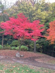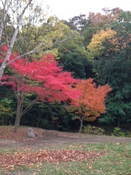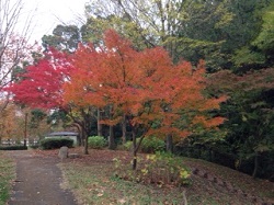 富岡総合公園アジサイ坂を入る口の右側、素晴らしい紅葉が目に入ってきます。