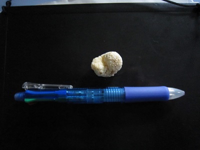 これ、結石といって、腎臓や尿管、膀胱などにできる結晶状の物質です。