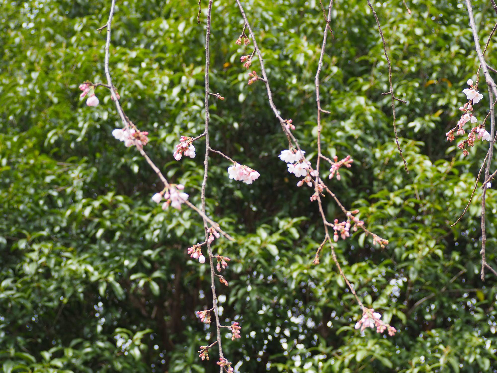 花木園のイトザクラ↓も開花しました。枝垂れ桜で枝が垂れたところに花を咲かせます。![]()