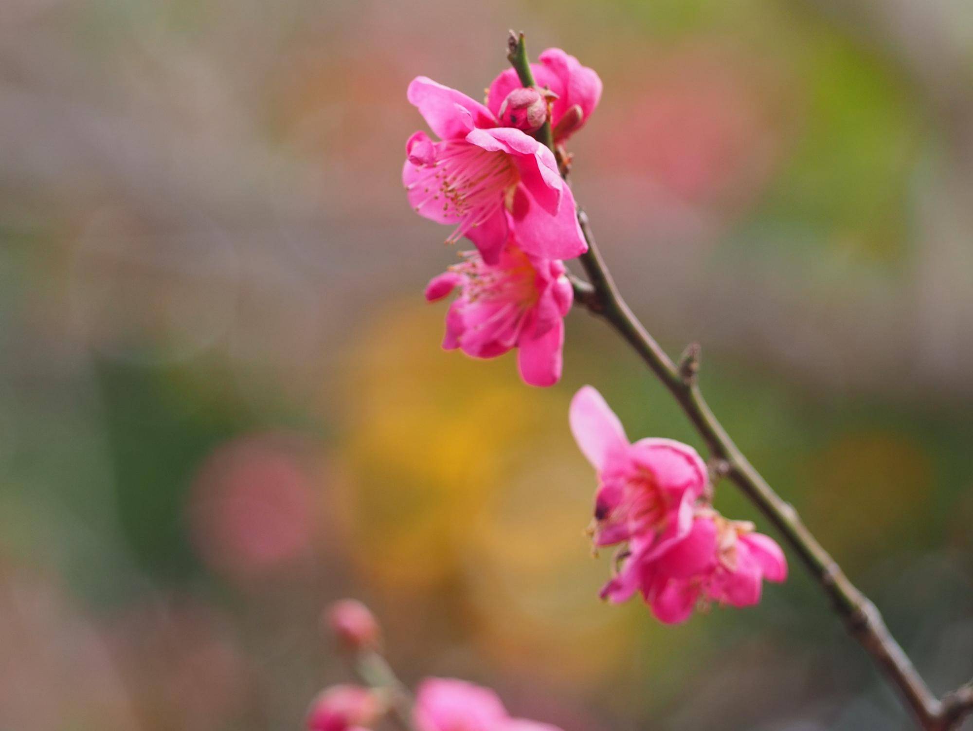 花木園に咲く「紅千鳥(ベニチドリ)」は、名の通り紅色の花梅です。![]()