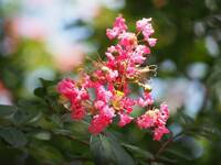 中国南部を原産とする夏を代表する花木の一つです。樹皮がつるつるしていることからサルが滑って落ちる→サルスベリという名前がついたと言われています。漢字で「百日紅」と書きますが、花期が長いところから呼ばれるようです。園内では花木園や展示研修館の裏で咲き、夏から秋にかけて長い間楽しめます。