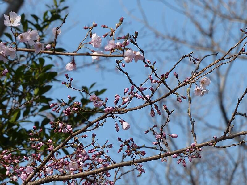 バラ科。開花は4月上旬。富士山周辺や箱根に多く、フジザクラ、ハコネザクラとも呼ばれます。高木が多いサクラ類の中では、樹高は低く大きくても10m程度にしかなりません。