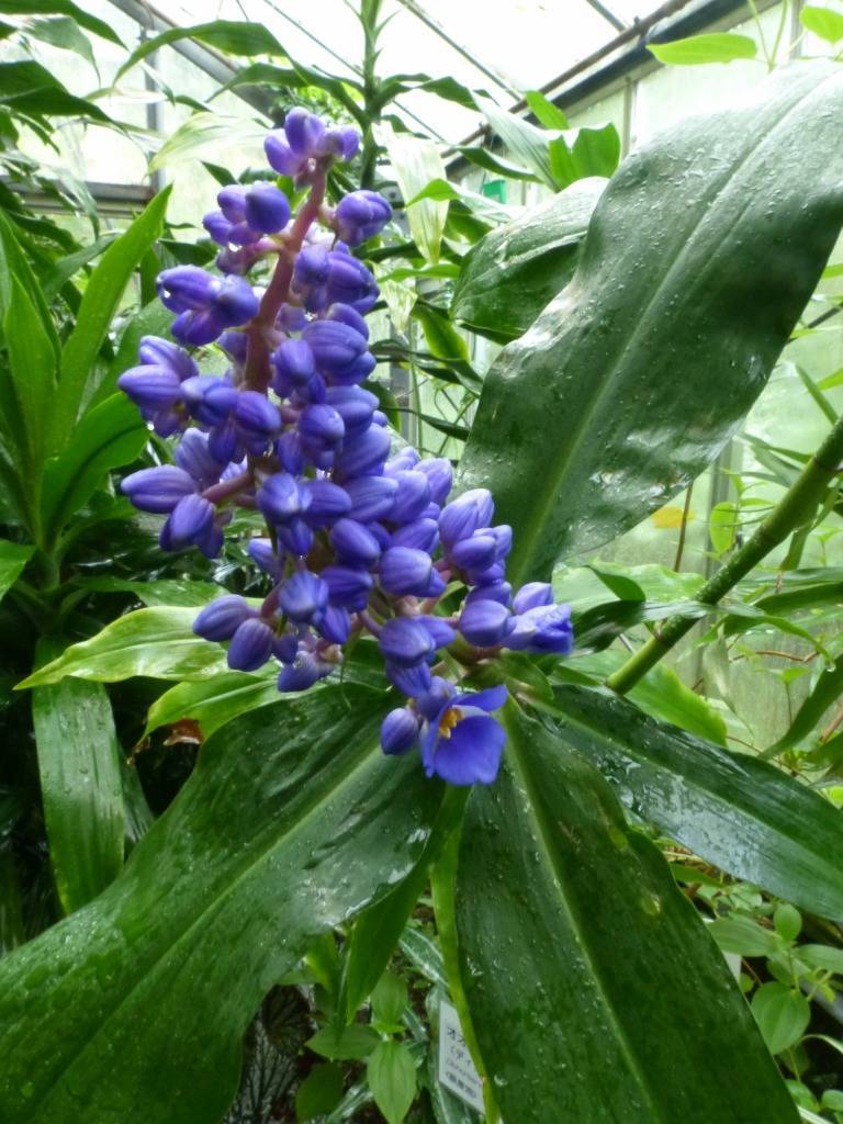 ブラジル南東部原産で、学名は「ディコリサンドラ・ティルシフロラ」といいます。「ディコリサンドラ」とはギリシャ語で、おしべの着き方が2通りある様を意味しています。ツユクサの仲間としては非常に大型で、草丈は人の背丈以上にまで伸び、10月頃青紫の花を穂状に咲かせます。また、ショウガ科の植物のような草姿から、海外では「ブルー・ジンジャー」と呼ばれます。