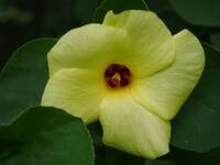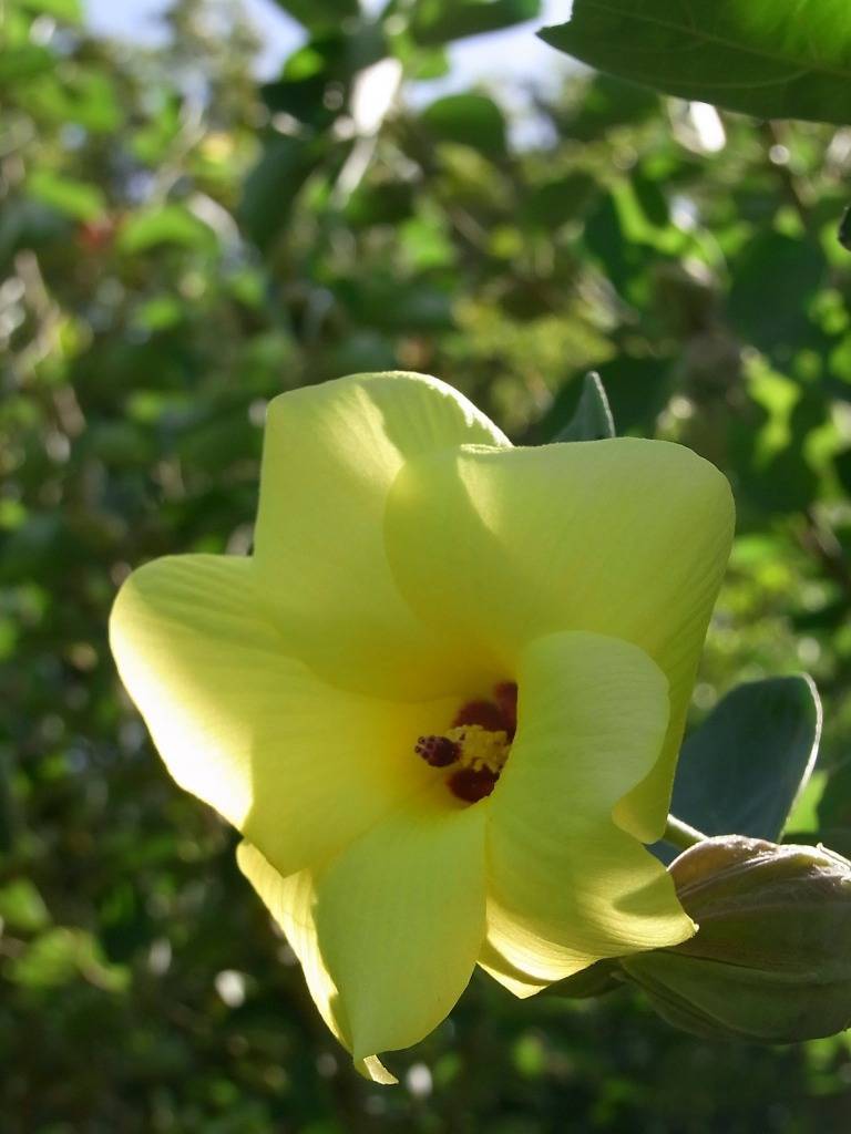 7月から8月にかけ、オクラに似た黄色い花を咲かせます。内湾や河口などの塩生の湿地に生える、日本原産の野生のハイビスカスといえます。朝に花が開いても夕方には閉じる一日花ですが、次々と花を咲かせます。