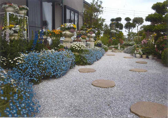 花いっぱいの和洋折衷の庭