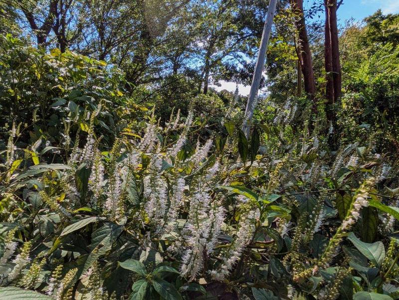 山野草エリアの上の方では、霜柱(シモバシラし)がたくさんの白いお花をつけています。