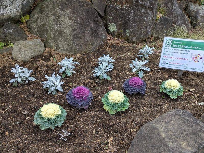 正門や古民家などでは、12月の始めに横浜市の花き展に出品された苗の一部を