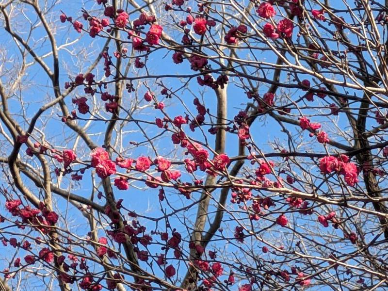 更新日:2026.01.18紅色のウメが咲いています 更新日:2026.01.18 紅色のウメが咲いています 山野草エリアから古民家エリアへの園路から竹林を見上げたあたりの 紅梅が咲き始めました。 梅林の梅より一つ一つのお花が小さく、枝ぶりも華奢な感じで 風情のある梅です。 この記事をシェアする Facebook Twitter LINEで送る ロウバイ…