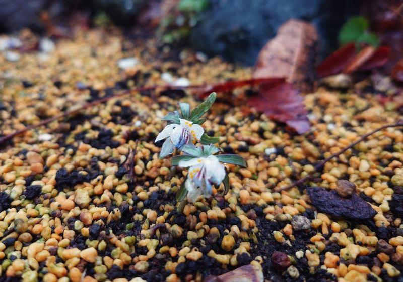 山野草マップの後ろの通路、石積みの小さな山に、ささやかに咲いています。