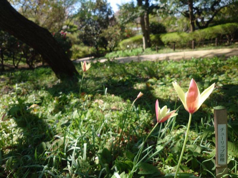 山野草エリアでは、少し小ぶりの原種系のチューリップが咲いています。
