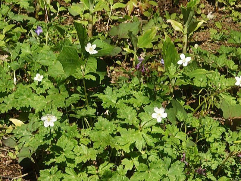 山野草エリアのマップの後ろでは、二輪草(ニリンソウ)が白いお花を咲かせています。