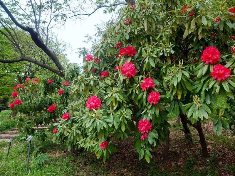 園内では赤や桃色の石楠花(シャクナゲ)が咲いています。