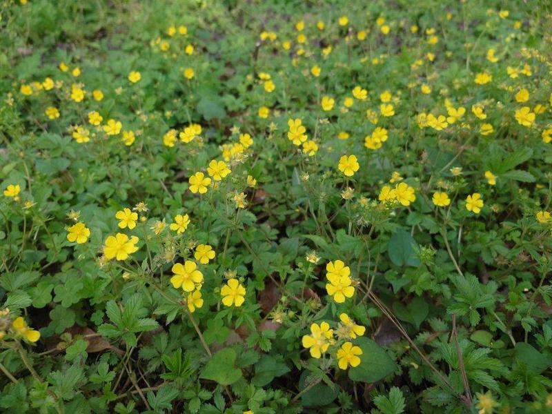山野草エリアでは、雄蛇苺(オヘビイチゴ)のお花がきれいです。