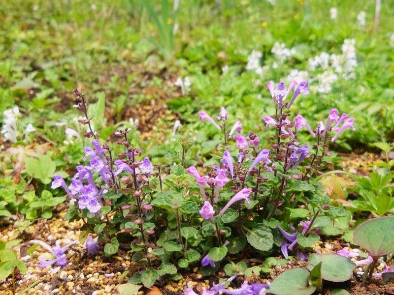 山野草エリアの竹林側の園路沿いでは、立浪草(タツナミソウ)が咲いています。