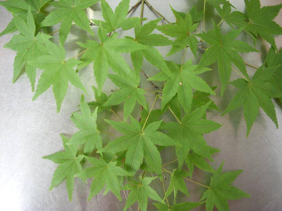 紅葉の美しさから、秋の象徴とされ、一般的にモミジという場合はイロハモミジを指すことが多いです。葉は鋸葉が大きく、若葉は5つ、成葉になると7つに裂けるのが普通です。花は春の芽出しと共に深紅の小花が咲きます。花の後は、プロペラ付きの実がなります。紅葉だけでなく新緑も美しい木です。