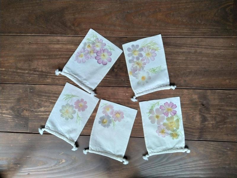今回は巾着袋に直接たたいて染め上げていいただきました。