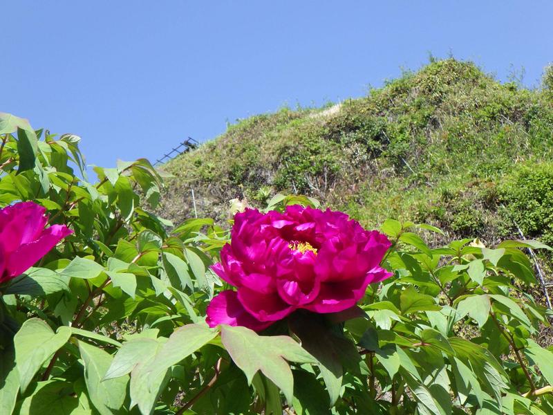 ボタンは美しい女性の例えで「立てば芍薬、座れば牡丹 ~ 」という言葉をよく耳にしますが、芍薬の上へと伸びるすらりとした立ち姿と、牡丹の横へとふんわり広がる姿を花に例えたものと言われています。今年も権現山公園のボタンは、「夏の日除け」や「冬の藁囲い」など育てるのは大変でしたが、ふんわりと美しく咲いてくれました。