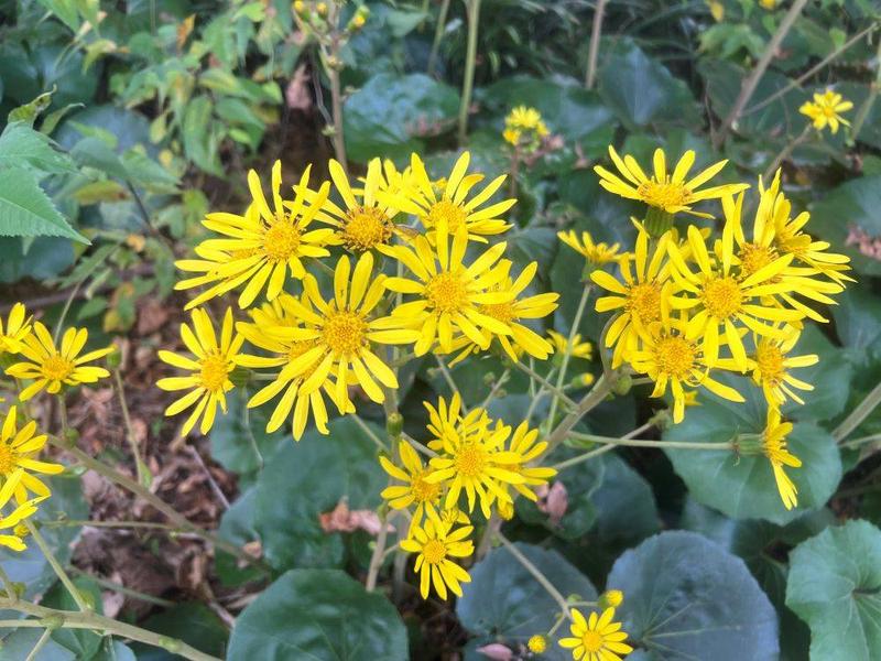 また、自由広場(おべんとう広場)付近では、ツワブキの花が満開です。 鮮やかな黄色がひときわ目を引き、秋の公園に彩りを添えています。