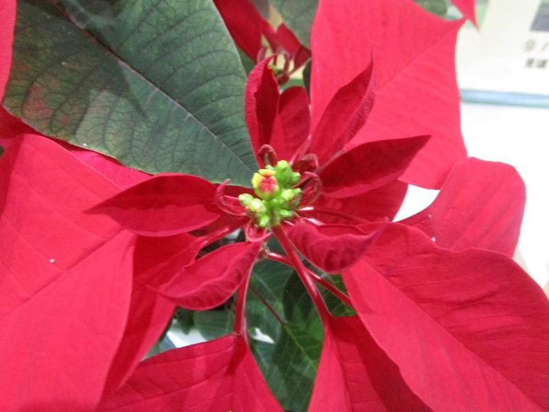岸根公園管理センターでは、今年で54回目を迎える横浜花き展覧会に出品された、シクラメンとポインセチアを展示しています。