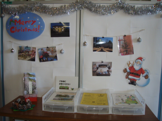 更新日:2014.12.19「もうすぐクリスマス★"」 更新日:2014.12.19 「もうすぐクリスマス★"」 管理センターの前には、クリスマスツリー?そして、管理センターの中もクリスマスらしく飾り付け*パンフレット等もありますので、お気軽に見に来てくださいね。・・・みなさま素敵なクリスマスをお過ごしください・・・ この記事をシェアする Facebook Twitter LINEで送る 冬の到来 「今年も…