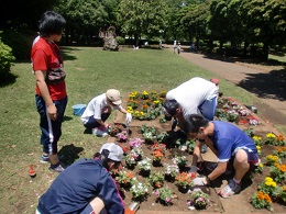 それぞれの担当花壇へデザインをして植えました。