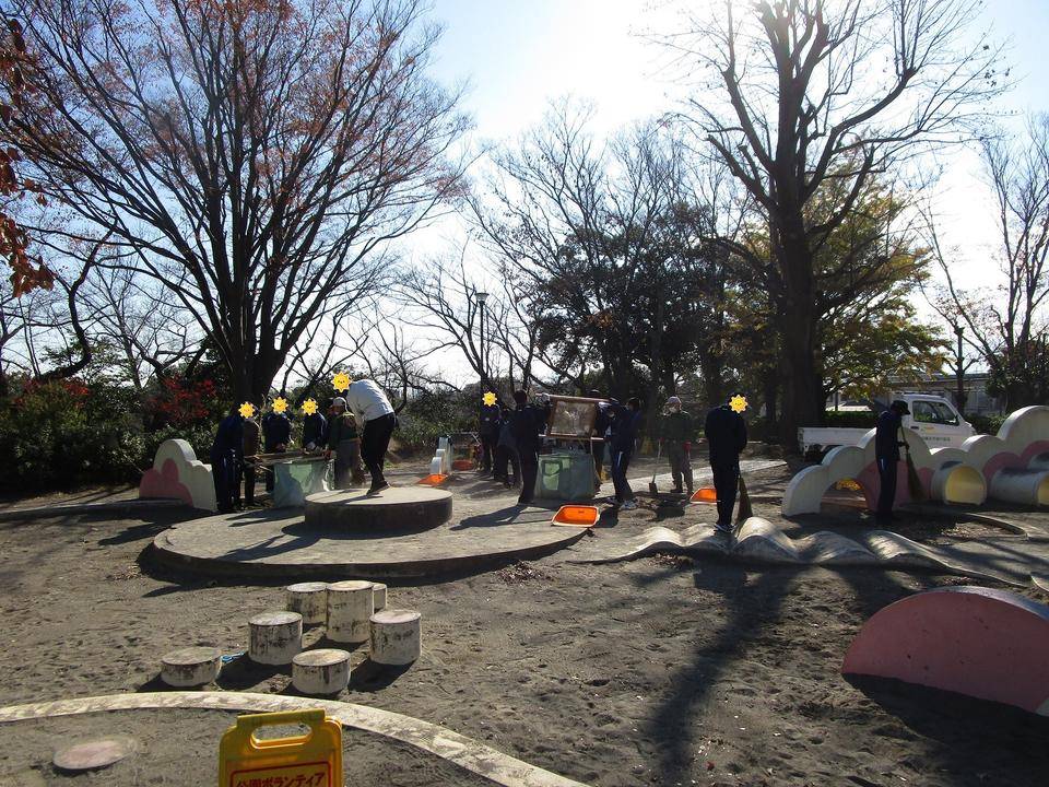 ボランティアで砂をほぐしたり、砂場の外に散った砂を集めたり、