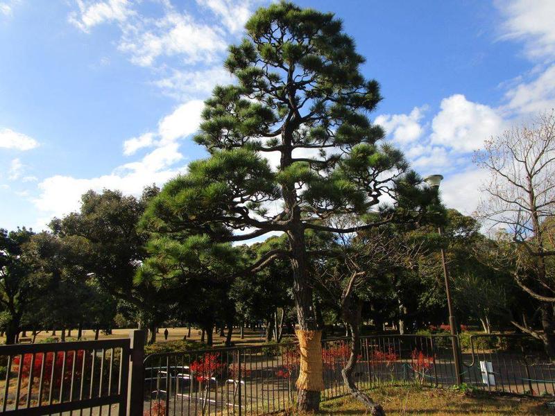 12月に入りクロマツの冬支度が始まりました。松の幹にワラを巻く「こも巻き」です