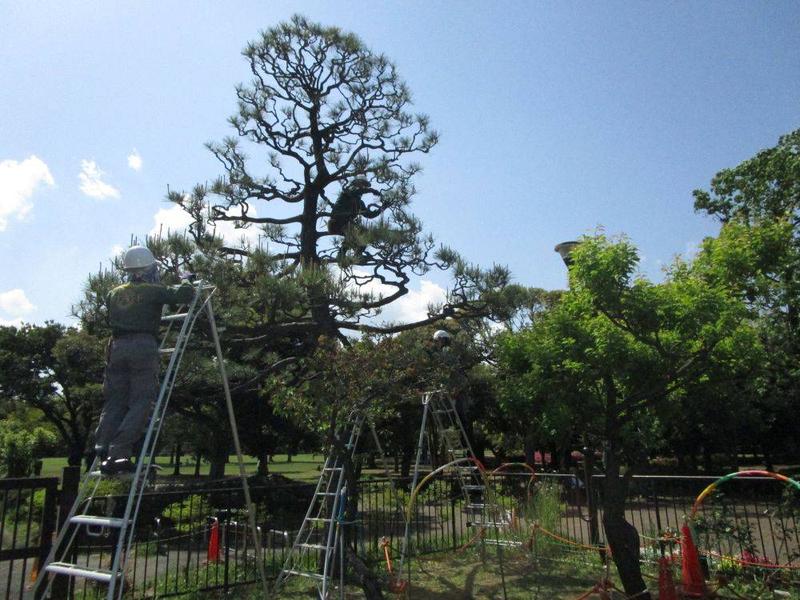 岸根公園管理センターにあるクロマツの「みどり摘み」をしました