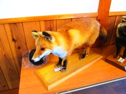 キツネやタヌキのはく製展示もあります。