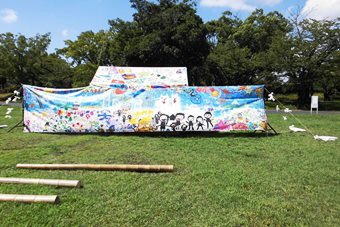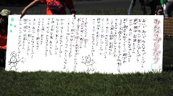竹材を叩きながらリズムを取って大きな声で歌っていました。