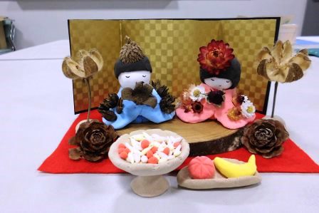 俣野公園で拾った木の実などを使って「おひなさま」を作りました。