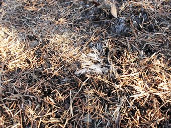 巡視で歩いていると、芝生に霜柱がたっていました。