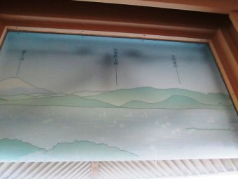 展望ラウンジのガラス窓上部に描かれたイラストは、