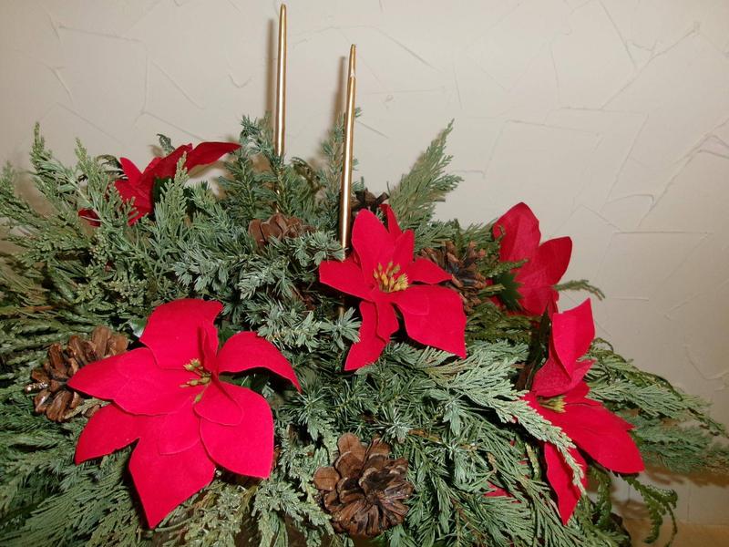 ▼サンルーム クリスマスの賑やかなアレンジメント