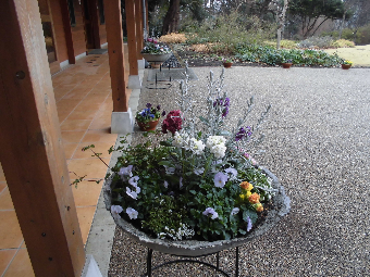 更新日:2016.01.29「寄せ植え」 更新日:2016.01.29 「寄せ植え」 大鉢の寄せ植え日本ガーデンデザイン専門学校より、学生さん達が授業で製作した寄せ植えを新たに提供して頂きました。この器はモルタルで成形しているそうです。レストハウス前の寄せ植えスタンドタイプと置き鉢生きものにとっては厳しい季節だと思いますが、こんなにも花を咲かせる植物があるのですね。レストハウス前がとても華やかになりました! この記事をシェアする Facebook Twitter LINEで送る 「雪化粧… 「春の嵐…