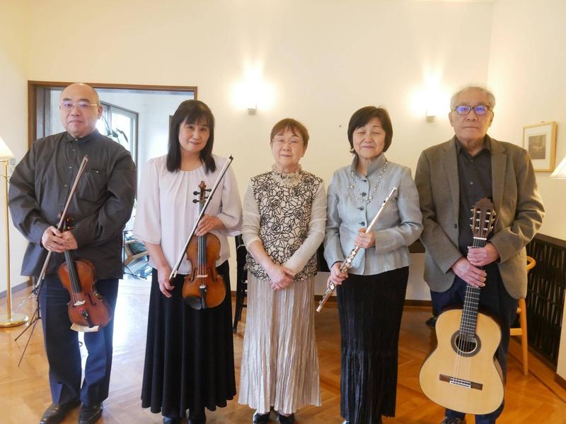 演奏は、アンサンブル花音(高橋 正彦さん ギター、高橋 弘子さん フルート、戸津 隆子さん ピアノ、五味 晶子さん・五味 俊哉さん ヴァイオリン)の皆さんです。