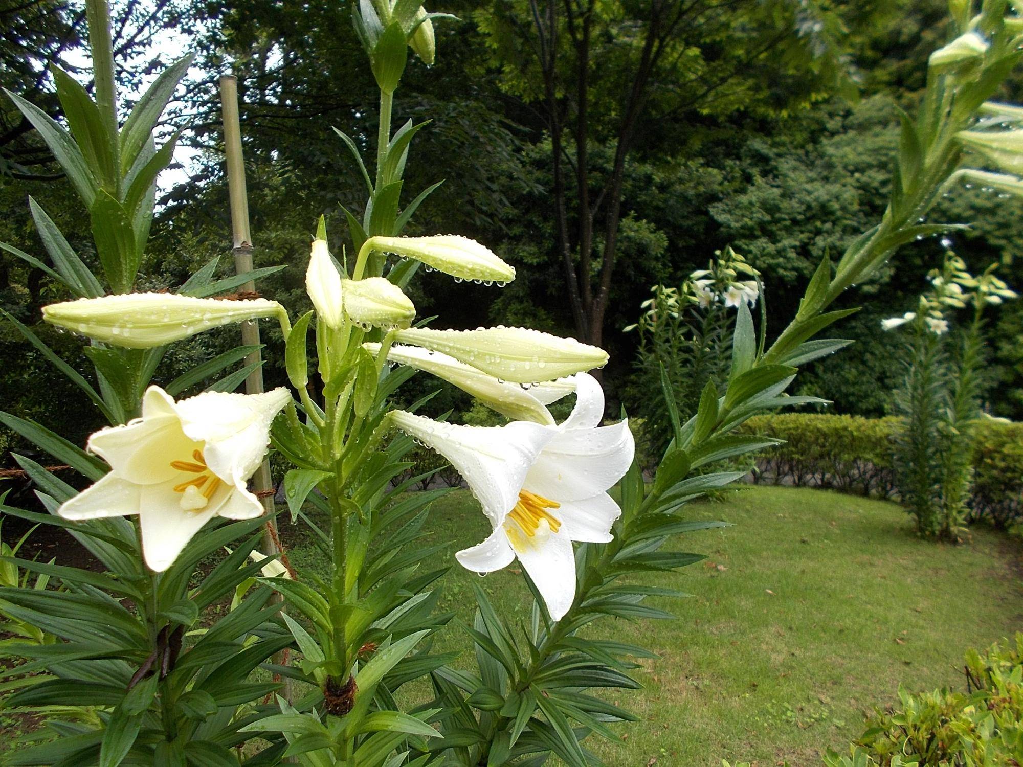 凛とした清楚な花姿は、雨の中でも際立ちます。
