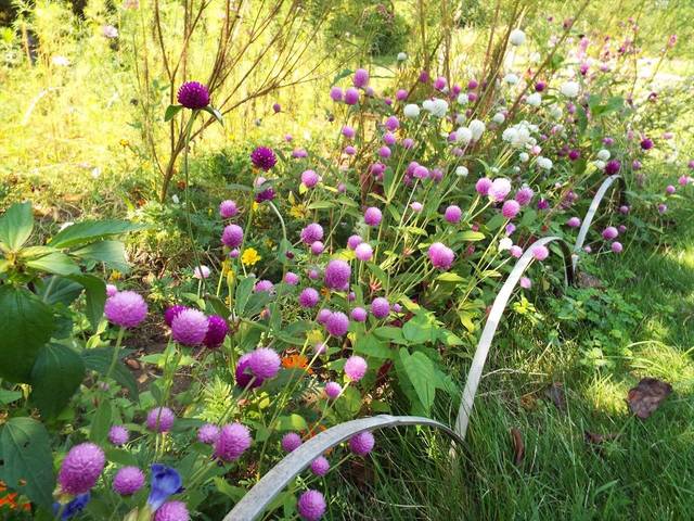 芝生広場の花壇ではたくさんのセンニチコウが揺れています。