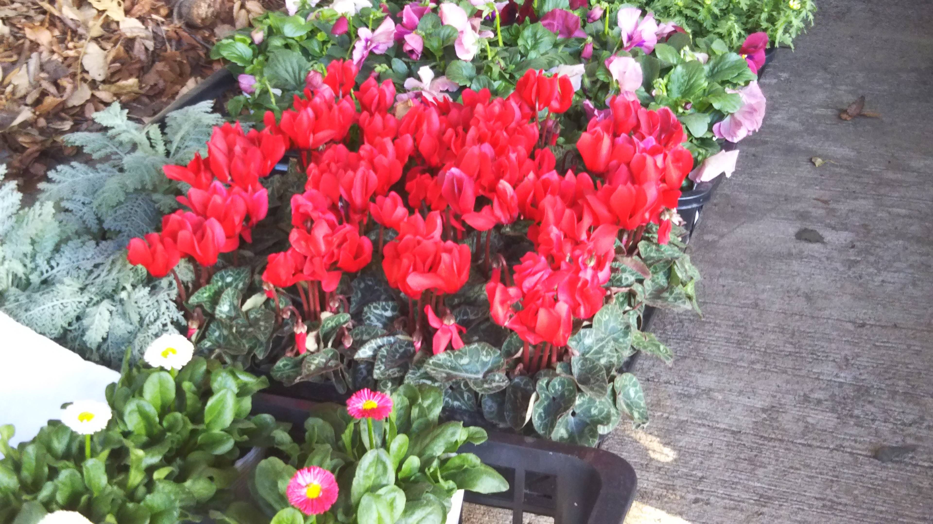 今日ご紹介するのはシクラメンです。サクラソウ科シクラメン属の多年草で、冬に咲く花の代表格の一つです。花の色は赤、白、ピンクが定番です。