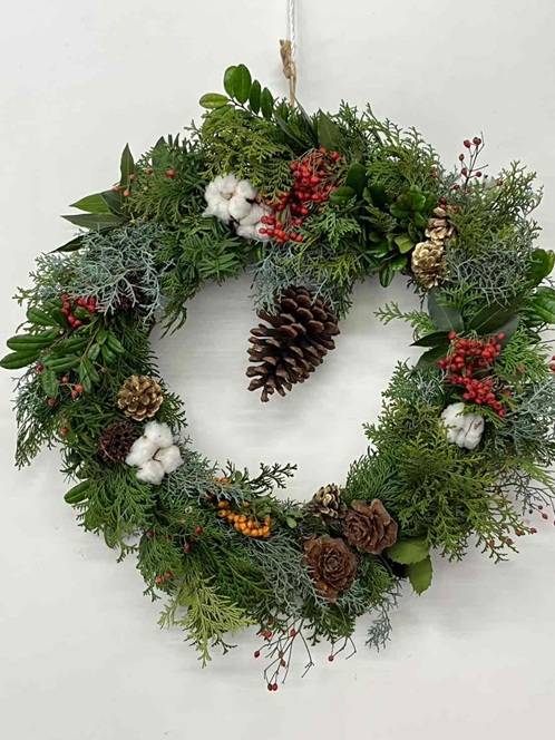 第二レストハウス談話室には職員手作りのリースを飾っています。