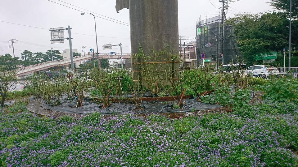 横浜駅から三ツ沢公園に向かうバス停(三ツ沢総合グランド入口)のところに花壇があります。
