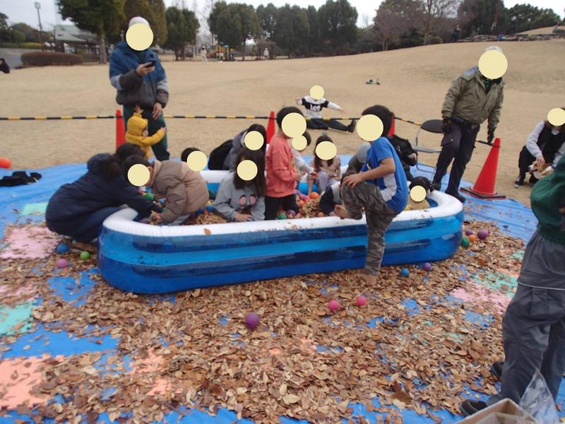 長浜公園では、2月22日(日)に、今年も【落ち葉&ボールプール】を開催しました♪