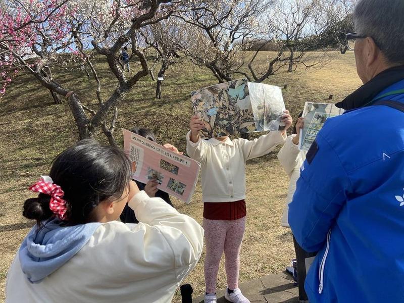 根岸森林公園ではたくさんの梅が咲き誇る中2月21日、22日と梅まつりが開催されました。今回の梅まつりには山元小学校4年2組の児童が自分たちで企画したスタンプラリーを開催しました。