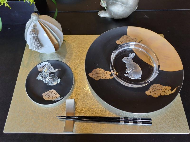 お皿は、絵付師 小見山 徳江氏が描かれた、お月様の絵柄です。