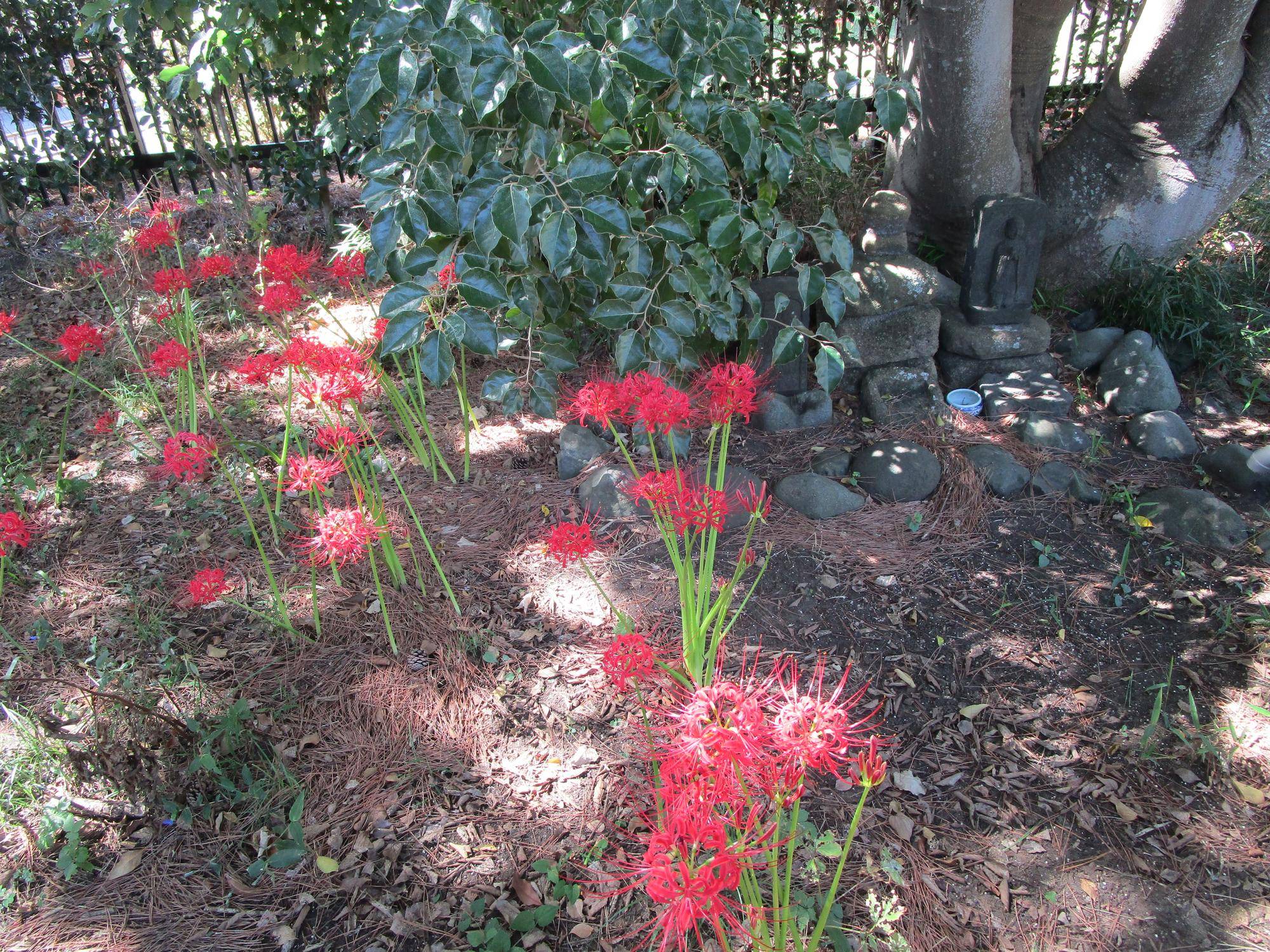 牡丹園内ベンチ裏にあるお地蔵さんの周りにも、沢山咲いています。