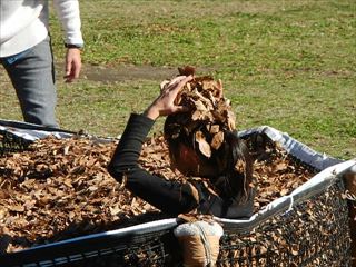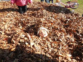穏やかに晴れ、まさにこの日は落ち葉プール日和。