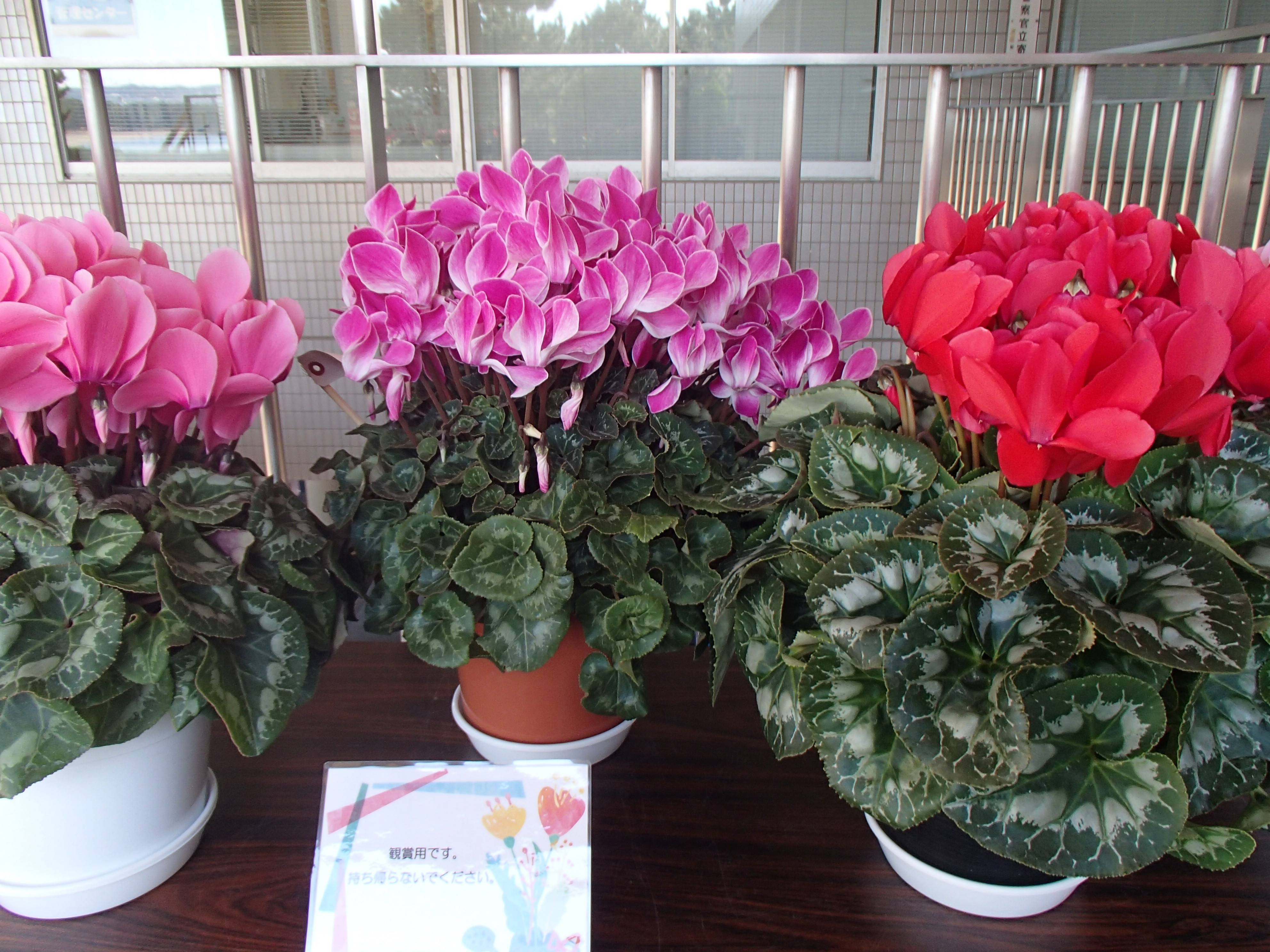 管理センター入口横に素敵なシクラメンを展示しています!!