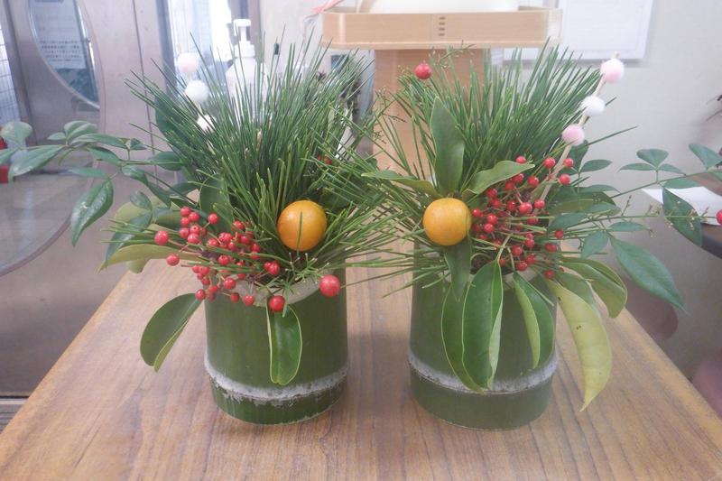 海の公園の松、長浜公園の竹を使って職員で手作りしましたのでぜひ見ていただけると嬉しいです。
