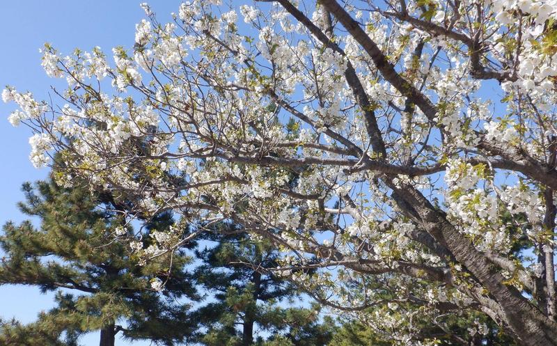 海の公園 標準木【オオシマザクラ】はようやく満開となり見頃となっています。