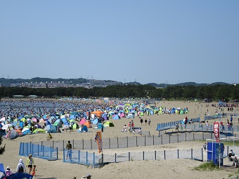 朝からたくさんの方が、砂浜にテントをたてて「潮干狩り」を楽しんでいました。